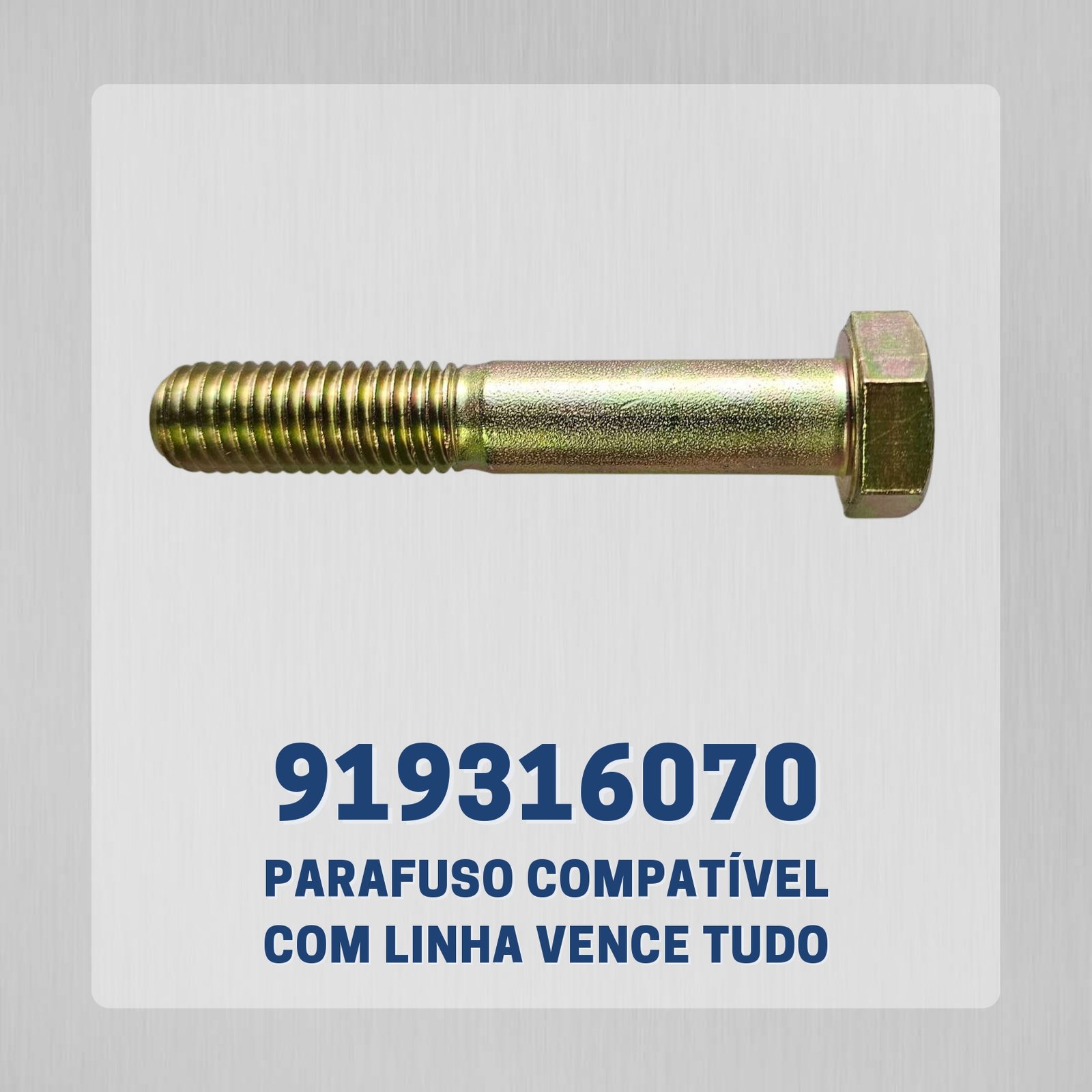 Acabamentos: Zincado Amarelo; Zincado Branco; Zincado Clear; Zincado Preto; Geomet; Polido RI e RP | MA e MB | UNC e UNF Padrão | Serrilhado Aço 8.8 | 10.9 | 12.9 Medidas em Milímetro e em Polegada